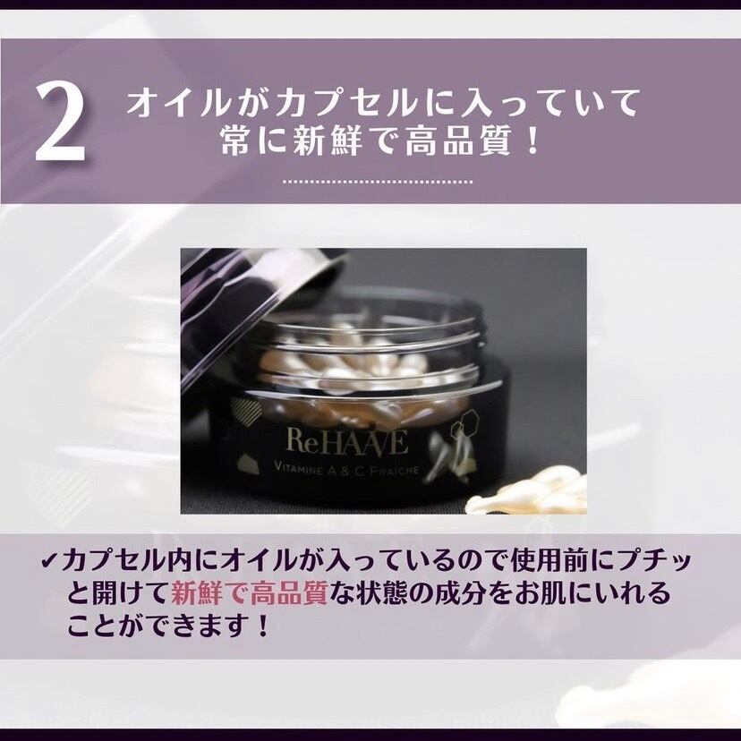 2種類の年齢肌に適した保湿成分(生レチノール×ビタミンC誘導体)を組み合わせ、新鮮な品質をいつでも満喫できるようカプセルに閉じ込めたフレッシュオイル。